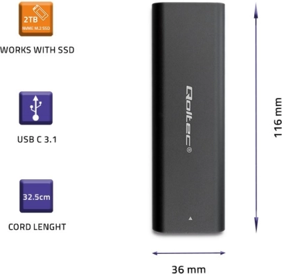 Suchen Sie eine elegante und schnelle Lösung für Backup und Datentransfer? Das externe QOLTEC-Gehäuse für M.2-NVMe-SSDs ist die ideale Wahl für Zuhause, Profis und kleine Unternehmen. Das Aluminiumgehäuse gewährleistet effiziente Wärmeableitung und Langlebigkeit, während das minimalistische Design auf den Schreibtisch wie in die Tasche passt.