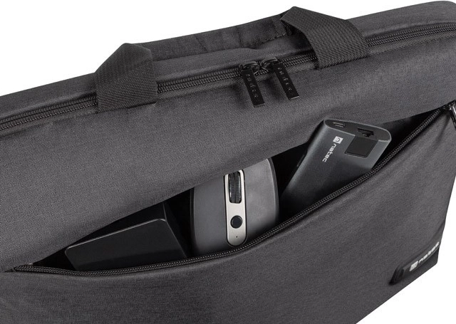 Die Tasche Natec Beira 15,6" ist für den sicheren Transport von Laptops bis 15,6" konzipiert. Das Hauptfach ist mit weichem Schaumstoff ausgekleidet, der Stöße dämpft und das Gerät vor Abrieb schützt. Dank der vorderen Reißverschlusstasche haben Sie Maus, Netzteil, Powerbank oder Telefon immer zur Hand.