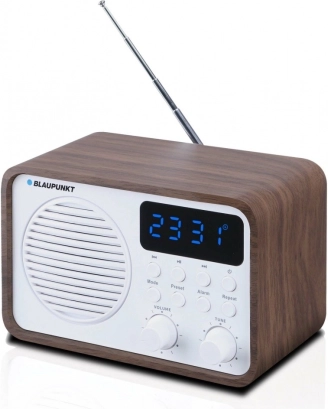 - Wecker: Ein integrierter Alarm weckt Sie wahlweise mit Summer oder Radio. Die hochwertige Materialkombination in Weiß und Holzoptik fügt sich stilvoll in jedes moderne Ambiente ein.