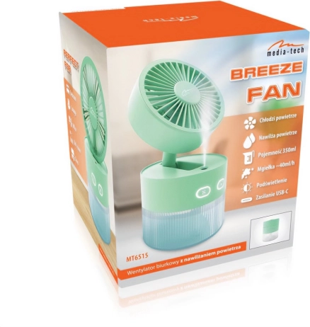 Genießen Sie frische und gesunde Luft in Ihrer Umgebung mit dem modernen Luftbefeuchter Breeze Fan 350ml von der Marke Media-Tech.