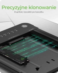 Zweiseitiges Klonen: Mit einem Tastendruck können Sie zwischen 2,5"/3,5" SATA HDD/SSD und M.2 PCIe NVMe SSD klonen und dabei eine saubere Kopie aller Daten und Konfigurationen erhalten.