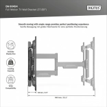 Die Halterung bietet einen ausziehbaren Arm mit einem Bereich von 6,3 bis 53,6 cm, was eine optimale Winkelanpassung für ideales Seherlebnis ermöglicht. Drehmöglichkeit im Bereich von +60 bis -60° und Neigung von +5 bis -10° bieten Anpassungsfähigkeit an die Bedürfnisse des Nutzers. Die horizontale Rotation im Bereich von +3 bis -3° gewährleistet eine präzise Platzierung des Bildschirms.