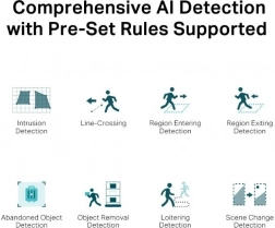 Schlüsselfunktionen der KI: Fortgeschrittene Algorithmen ermöglichen die Erkennung von Menschen und Fahrzeugen, für genauere Ereignisse und Anpassung der Alarmregeln nach Bedarf.