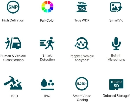 Kamera TP-Link VIGI 5MP bietet außergewöhnliche Bildqualität mit Vollfarbüberwachung rund um die Uhr. Dank hoher Beständigkeit und integrierten intelligenten Funktionen bietet sie zuverlässige Sich... Mehr anzeigen