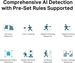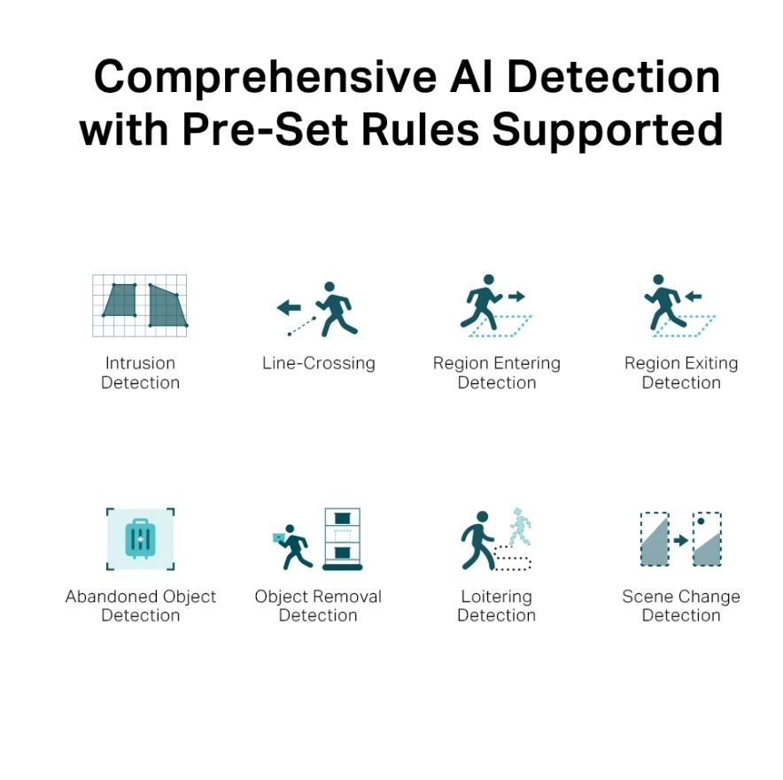 Die integrierte KI ermöglicht die Klassifizierung von Personen und Fahrzeugen, intelligente Zonen und Regeln (Linien, Bereiche), wodurch Fehlalarme reduziert und Benachrichtigungen präzisiert werden. Aktive Abschreckung mit Licht und Ton, Zwei-Wege-Kommunikation und der Korridormodus 9:16 erhöhen die Effizienz der Überwachung in Fluren und engen Bereichen. Dank H.265+ erhalten Sie ein klares Bild mit geringerer Datenlast und Platzersparnis.