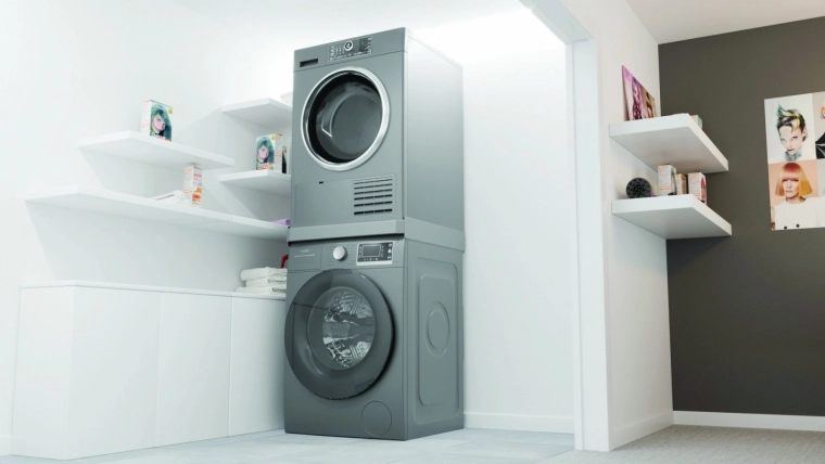 - Platzersparnis – ermöglicht die Installation des Trockners über der Waschmaschine.