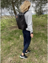 Für maximalen Komfort verfügt der Rucksack über weiche, atmungsaktive und verstellbare Schultergurte, einen stabilen oberen Tragegriff für das Tragen in der Hand und einen elastischen Gurt zur Befestigung am Koffergriff. Die vordere Reißverschlusstasche ist ideal für Dokumente und Smartphone, innen finden Sie eine größere Tasche für ein Tablet oder kleines Notebook und ein geräumiges Hauptfach für die restliche Ausrüstung.