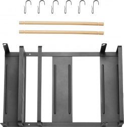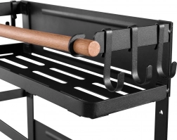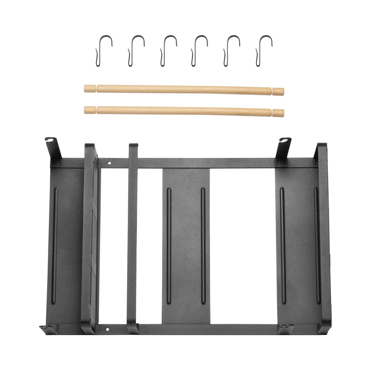 Der breite Halter für Papierhandtücher ist für die meisten auf dem Markt erhältlichen Rollen geeignet. Sechs abnehmbare Haken können beispielsweise zum Aufhängen von Kaffeebechern, Tassen oder Küchenutensilien verwendet werden. Dank des universellen und stilvollen Designs fügt sich das Regal problemlos in das Interieur jeder Küche ein. Das Holzelement hat nicht nur eine dekorative Funktion, sondern schützt die platzierten Produkte auch vor dem Herausfallen. Drei starke Magnete ermöglichen eine einfache und schnelle Montage des Regals auf einer Metalloberfläche, beispielsweise am Kühlschrank oder an der Waschmaschine, ganz ohne Bohren und Werkzeug. Die maximale Tragfähigkeit beträgt 12 kg.