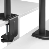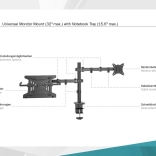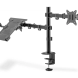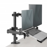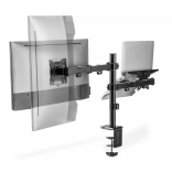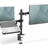 Die Halterung ermöglicht eine individuelle, platzsparende und ergonomische Montage eines Monitors mit einer Bildschirmdiagonale bis 32''/9 kg und eines Notebooks mit einer Bildschirmdiagonale bis 15,6''/4 kg. Der VESA-Halter unterstützt: Die Halterung bietet zwei Montagemöglichkeiten: Sowohl Tischklemme als auch Durchtischbefestigung sind im Lieferumfang enthalten. Dank des Schnellverschlusses kann die VESA-Platte bei der Montage/Demontage mittels Schraube befestigt oder gelöst werden. Durch die integrierte Kabelführung bleibt der Arbeitsplatz aufgeräumt.