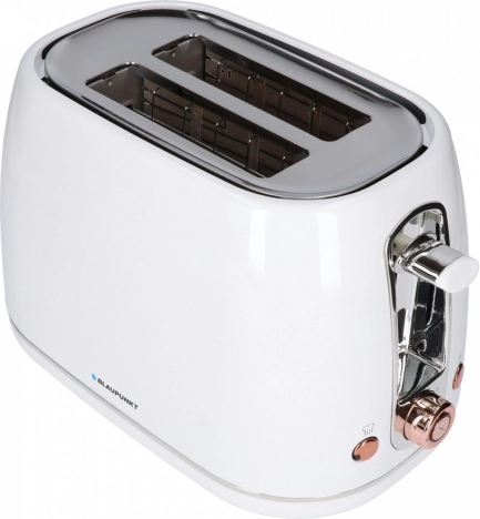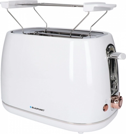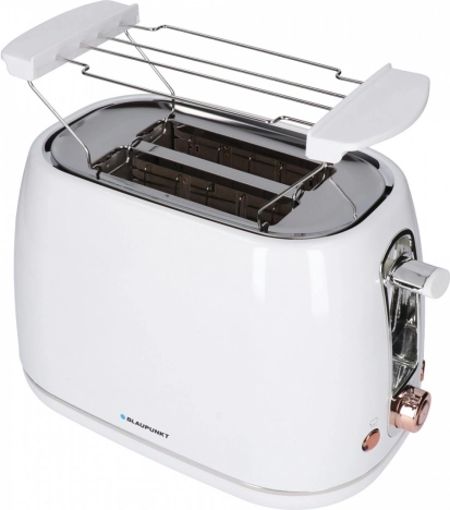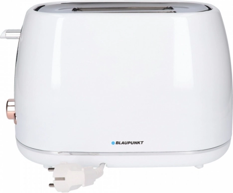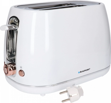 Der stilvolle weiße Toaster Blaupunkt TSS802WH mit zwei breiten Schlitzen und einem metallenen Brötchenaufsatz bereitet gleichmäßig geröstete Toasts genau nach Ihrem Geschmack zu. Er bietet 7 Bräunungsstufen mit elektronischer Regelung, Funktionen zum Auftauen und Aufwärmen, automatische Zentrierung der Scheiben und eine praktische herausziehbare Krümelschublade für einfache Pflege.