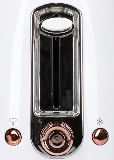 Dank der elektronisch gesteuerten 7-stufigen Regulierung stellen Sie die Bräunung ganz einfach ein. Die automatische Zentrierfunktion richtet das Gebäck für gleichmäßiges Rösten beider Seiten aus, die Modi Auftauen und Wiederaufheizen sparen Zeit, wenn Sie auf Vorräte aus dem Gefrierschrank zurückgreifen.