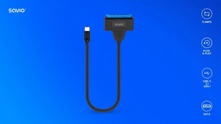 Genießen Sie die bequeme Verbindung Ihrer SATA HDD und SSD direkt mit Geräten über USB-C mit dem Savio Adapter. Dank des SATA III Standards bietet der Adapter eine Datenübertragungsgeschwindigkeit von bis zu 5 Gbps, was schnelles Backup und Transfer großer Dateien ermöglicht. Zudem sorgt die Plug & Play Funktion für einfache Nutzung ohne zusätzliche Treiber und ist kompatibel mit den Systemen Windows, macOS und Linux.
