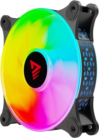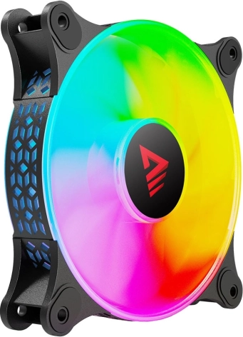 Ein 120 mm großer Ventilator mit einer Drehzahl von bis zu 1800 U/min sorgt für eine effektive Wärmeabführung. Neun ARGB-LEDs erzeugen beeindruckende Lichteffekte.