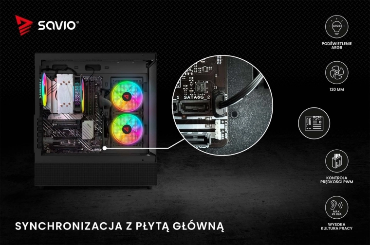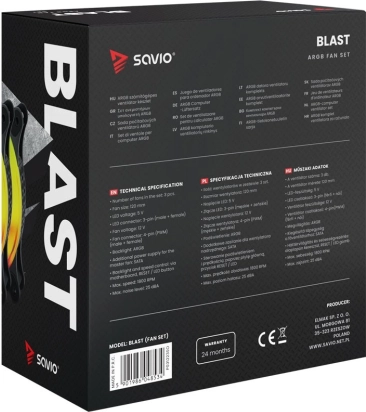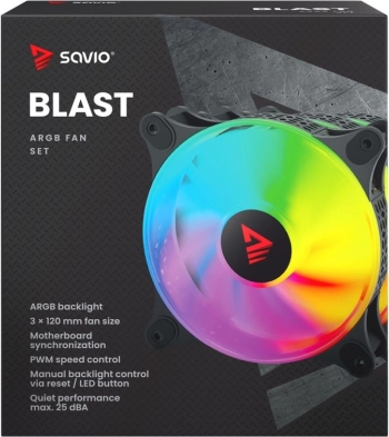 Der Ventilator Savio BLAST 120mm ARGB hat eine Standardgröße von 120 mm und erreicht eine maximale Drehzahl von bis zu 1800 U/min, was eine effiziente Wärmeableitung aus dem Computergehäuse gewährleistet. Sein einzigartiges Rahmendesign mit neun integrierten ARGB-LEDs bietet beeindruckende Lichteffekte, die an persönliche Vorlieben angepasst werden können, um eine einzigartige Atmosphäre zu schaffen.