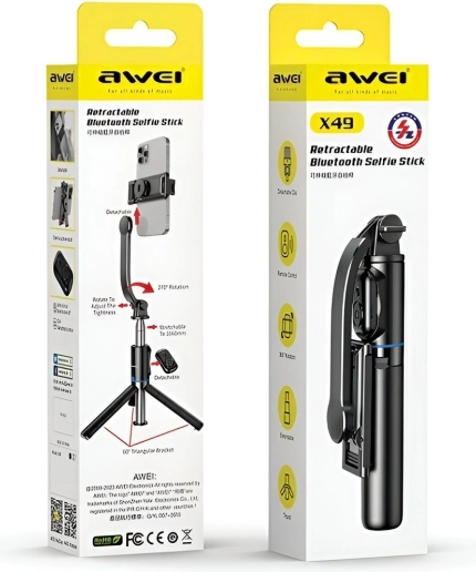 Das Selfie‑Stativ X49 vereint Ästhetik und Funktion: Die robuste Konstruktion mit stabilem Dreibein‑Standfuß und einem Kopf mit präziser vertikaler und horizontaler Einstellung sorgt für scharfe Aufnahmen ohne Verwackeln. Die abnehmbare Bluetooth‑Fernbedienung ermöglicht Fotos und Videos aus der Ferne – ideal für Solo‑Reisen und Gruppenfotos ohne Timer.