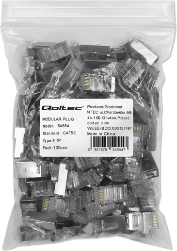 Zuverlässiges Set modularer RJ45-Steckverbinder für FTP-CAT5e-Kabel mit vergoldeten Kontakten und Abschirmung gegen Störungen. Bietet stabile Datenübertragung bis zu 1 Gb/s, höhere Korrosionsbeständigkeit und zuverlässige Verbindungen in Umgebungen mit erhöhter elektromagnetischer Störbeeinflussung.