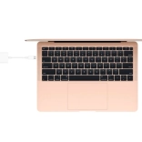 Ein goldener Laptop mit modernem Design zeigt, wie der Adapter beim Anschluss an ein stilvolles Gerät aussieht und seinen ästhetischen Wert verstärkt.