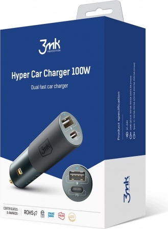 3mk Hyper Car Charger 100W schneller Autoadapter mit USB‑C und USB‑A