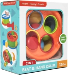 Klopfspiel und Trommel 2in1 bietet zwei Spielzeuge in einem – das Hämmern von Kugeln mit einem Hammer und das Spielen der Trommel. Dieses farbenfrohe und interaktive Produkt fördert die Entwicklung von Schlüsselkompetenzen bei Kindern.