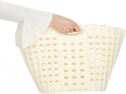 Der Korb ist mit zwei stabilen Griffen für bequemes Tragen auch bei voller Beladung ausgestattet. Seine kompakten Maße im zusammengeklappten Zustand sind in kleinen Wohnungen wie auch auf Reisen ein Plus.