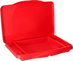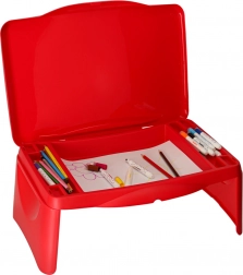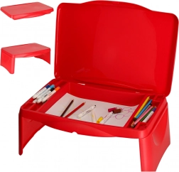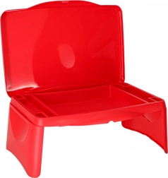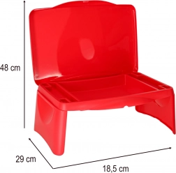 Der Tisch lässt sich schnell auf kompakte Maße zusammenfalten, ist leicht zu tragen und zu reinigen. Die robuste Kunststoffausführung sorgt für Stabilität und sicheres Benutzen auf dem Schoß oder auf dem Sitz.