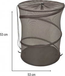 Der Korb besteht aus atmungsaktivem Netzmaterial, das Feuchtigkeit und unangenehme Gerüche verhindert. Dank seines geringen Gewichts ist er einfach zu tragen.