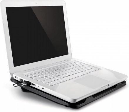 Die Unterlage ist für den täglichen Einsatz konzipiert – im Büro, zu Hause und unterwegs. Sie bietet eine leichte Neigung für ergonomisches Tippen, wird über USB mit Strom versorgt und ist mit einer breiten Palette von Notebook‑Größen kompatibel.