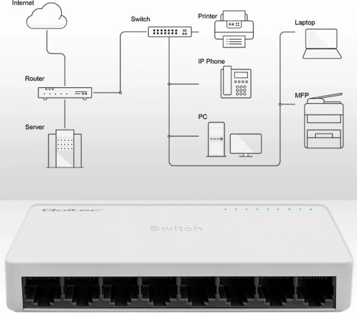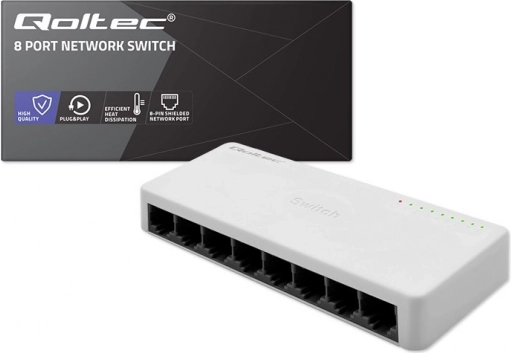 Holen Sie mehr aus Ihrem Netzwerk mit dem kompakten QOLTEC-Switch. Acht RJ45-Ports ermöglichen es, gleichzeitig bis zu sieben Endgeräte sowie einen Uplink zum Router oder Modem zu verbinden. Der Switch unterstützt 10/100 Mb/s (Fast Ethernet), arbeitet im Voll- und Halbduplex und gewährleistet dank IEEE 802.3x-Flusskontrolle eine reibungslose und zuverlässige Datenübertragung.