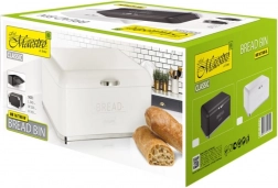 Der Brotkasten Maestro ist ein stilvolles und funktionales Accessoire für Ihre Küche. Seine kompakten Abmessungen von 34 x 16 x 22 cm ermöglichen eine einfache Platzierung auf der Küchenarbeitsplatte. Hochwertiger Edelstahl sorgt für eine lange Lebensdauer und Widerstandsfähigkeit gegen Beschädigungen, während die klassische weiße Farbe mit silbernen Elementen Eleganz verleiht.