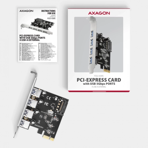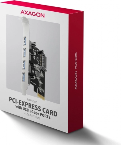 AXAGON PCIe-Controller mit 4 USB 3.2 Gen 1-Ports, UASP und SATA-Stromversorgung