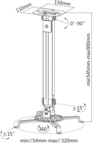 Deckenhalterung für Projektor 55–90 cm 13,5 kg, silber
