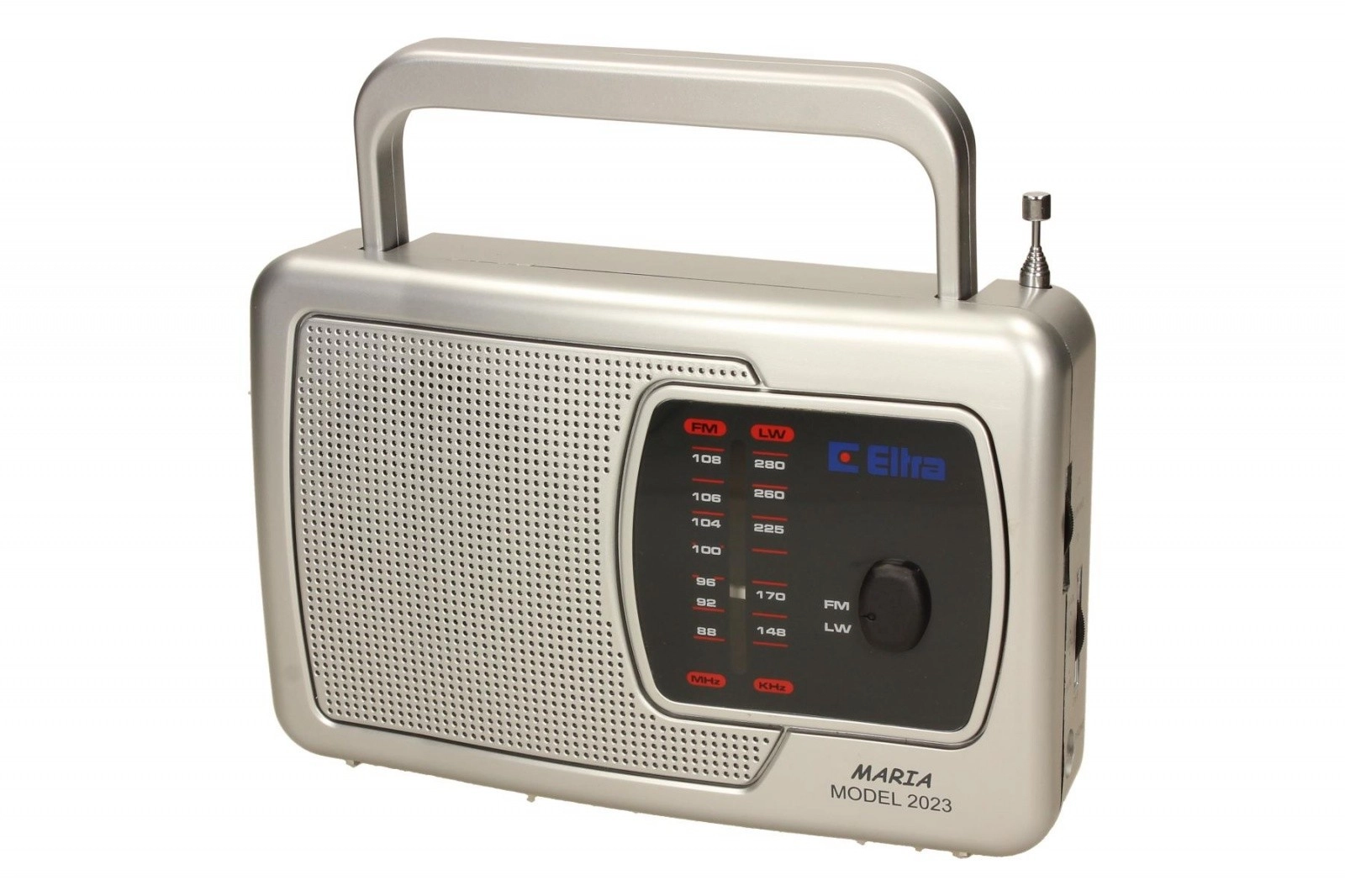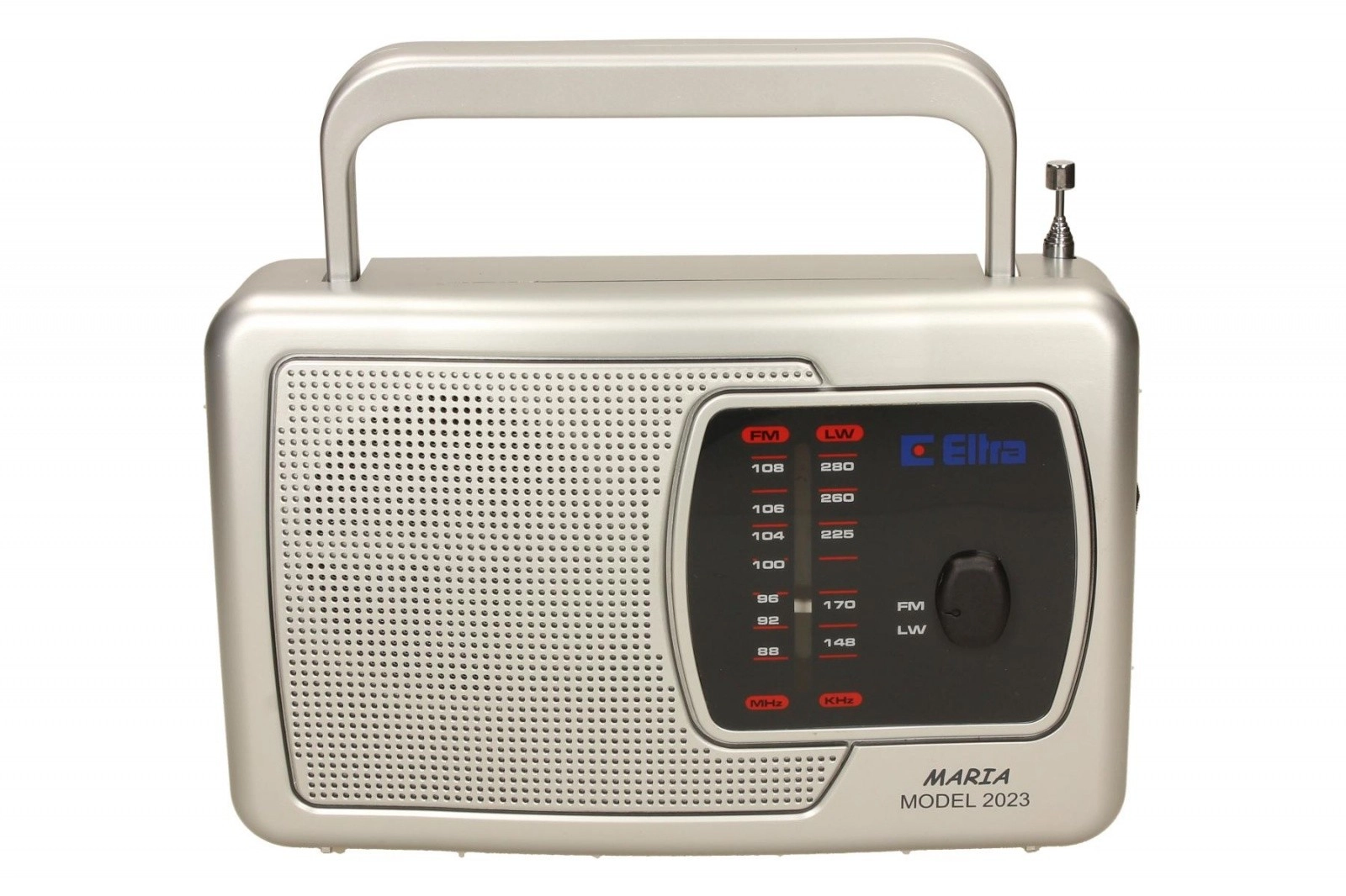 Tragbares Radio MARIA Modell 2023 bietet die Möglichkeit, Langwelle und UKW zu hören. Dank der Stromversorgung über das 230V-Netz oder Batterien ist es sowohl zu Hause als auch unterwegs leicht zu verwenden.