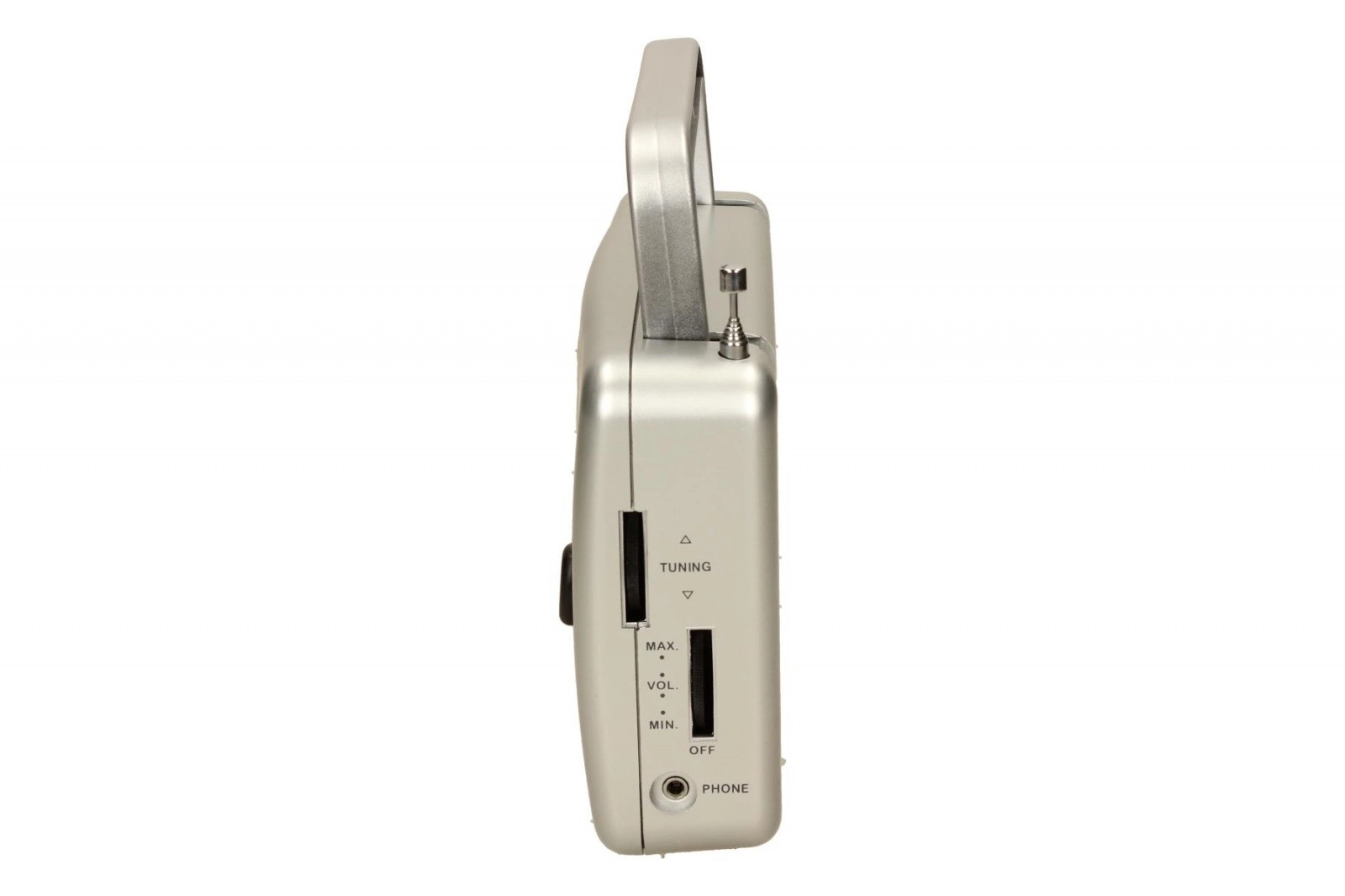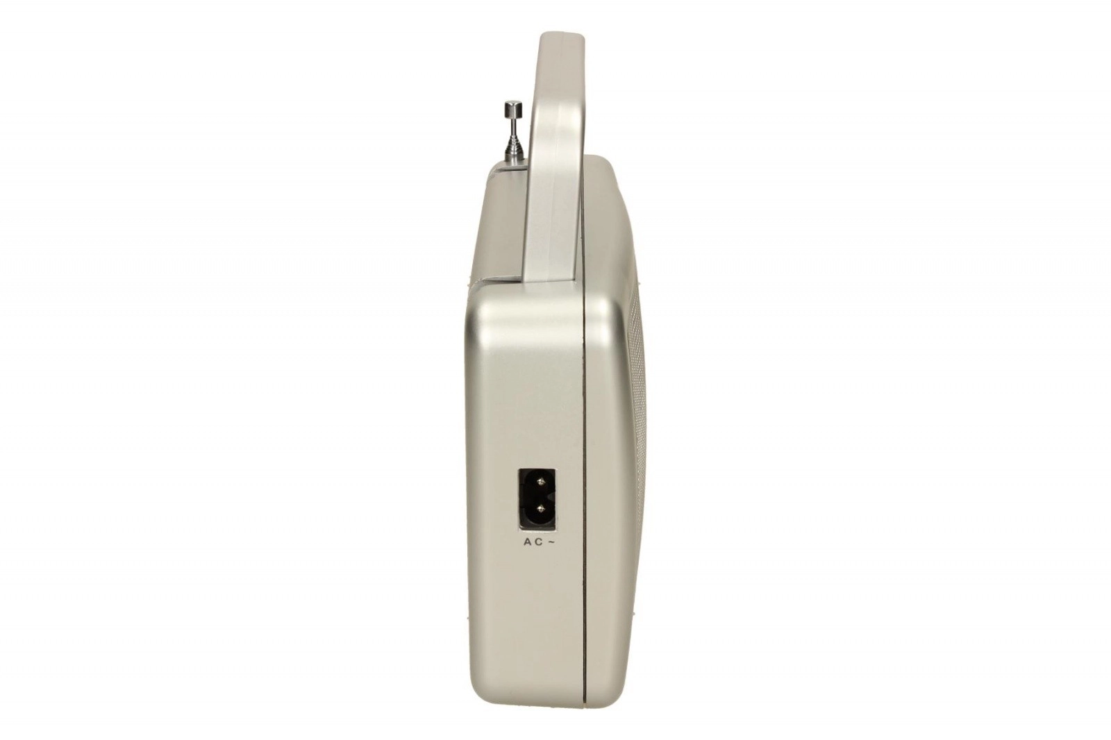 Das silberne Radio mit leicht ablesbarem Bedienfeld bietet hervorragende Leistung und einen eleganten Look.