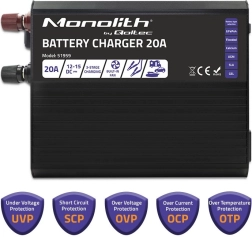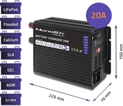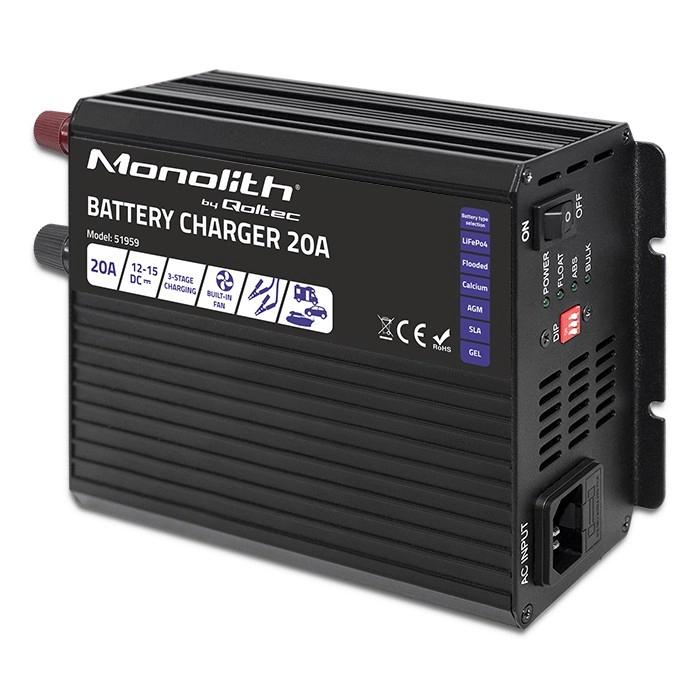 Das MONOLITH Ladegerät 12 V/20 A wurde für schnelles, sicheres und akkuschonendes Laden von Starter- und Traktionsbatterien entwickelt. Der 3-stufige Algorithmus BULK – ABS/BOOST – FLOAT passt Spannung und Strom automatisch dem Batteriezustand an, verkürzt die Ladezeit und verlängert die Lebensdauer. LED-Anzeigen zeigen übersichtlich die aktuelle Phase.
