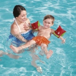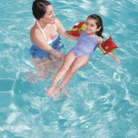 Die aufblasbaren Bestway-Schwimmflügel sind ideal für Kinder, die Schwimmen lernen. Zwei separate Luftkammern sorgen für zuverlässigen Auftrieb, während das weiche und leichte PVC die Armbewegungen nicht einschränkt. Das fröhliche Ananasmotiv und die leuchtenden Farben motivieren kleine Schwimmer zu einem sicheren Kennenlernen des Wassers.