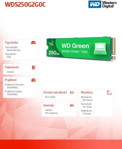 WD Green SN350 250 GB SSD M.2 2280 NVMe PCIe