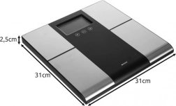 Hochpräzise Sensoren und Kontaktelektroden gewährleisten eine zuverlässige Berechnung des BMI sowie des Anteils an Fett, Wasser und Muskelmasse. Die Ergebnisse werden nach der Messung automatisch im Benutzerprofil gespeichert.