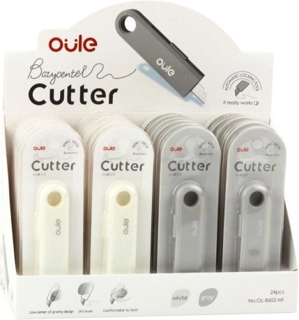 Die robuste Stahlklinge wird per manuellem Schieberegler ausgefahren, während das leichte Kunststoffgehäuse mit abgerundeten Kanten angenehm in der Hand liegt. Die Öse im Gehäuse ermöglicht das Aufhängen an einer Schnur, einem Haken oder die Befestigung am Schlüsselbund. Erhältlich in dezenten Farben (Mix); die Farbe wird zufällig gewählt.