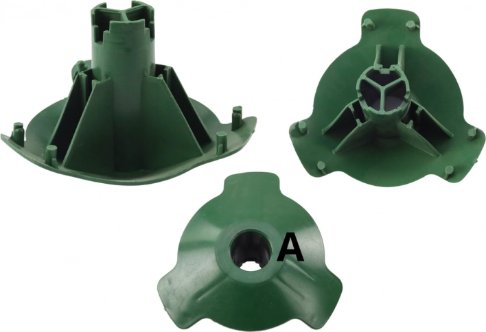 Korpus zur Befestigung der 3 Standfüße für den Weihnachtsbaumständer. Stabil, einfache Montage, PVC-Material, Stammdurchmesser 3,5 cm, CE-zertifiziert.
