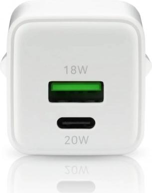 Das Ladegerät bietet schnelles Aufladen über duale USB-A- und USB-C-Anschlüsse.