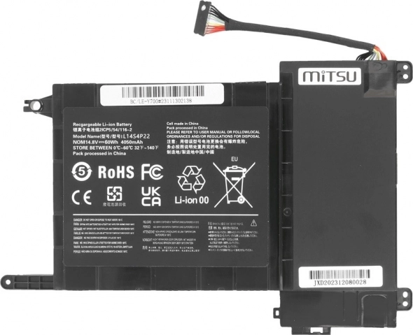 MITSU Akku für LENOVO IdeaPad Y700 (60 Wh, 14,8 V). Hochwertige Li‑Ion‑Zellen der Klasse A, reale Kapazität, mehrstufige Schutzfunktionen, CE/RoHS/ISO‑Zertifizierung.