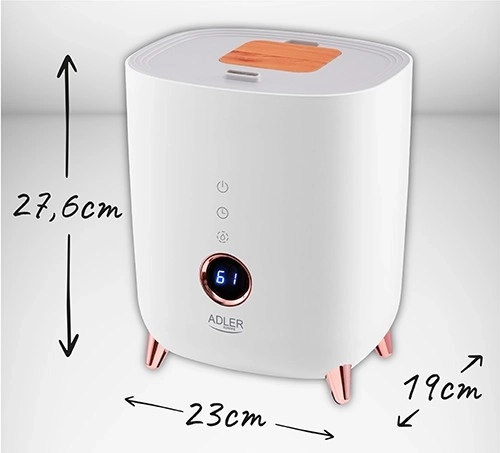 Schaffen Sie ein gesundes und angenehmes Umfeld zu Hause und im Büro. Der Ultraschall-Luftbefeuchter ADLER AD 7972 verteilt einen feinen Nebel mit einem Durchmesser von 1–5 µm, der die Luftfeuchtigkeit effektiv erhöht und die Luftqualität verbessert. Das elegante Design mit roségoldenen Akzenten und das übersichtliche LED-Display fügen sich perfekt in moderne Interiors ein.