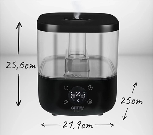 Der stilvolle Ultraschall-Luftbefeuchter CAMRY CR 7973 mit LED-Display und Touch-Bedienung sorgt für eine ideale Luftfeuchtigkeit im Haushalt. Er bietet Top-Fill-Befüllung für einfache Handhabung, einen leisen Nachtmodus, automatisches Abschalten bei Wassermangel und eine präzise Anzeige der aktuellen Luftfeuchtigkeit auf dem Display. Die leistungsstarke Ausbringung von 100–260 ml/h hält die Luft das ganze Jahr über angenehm frisch.