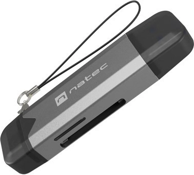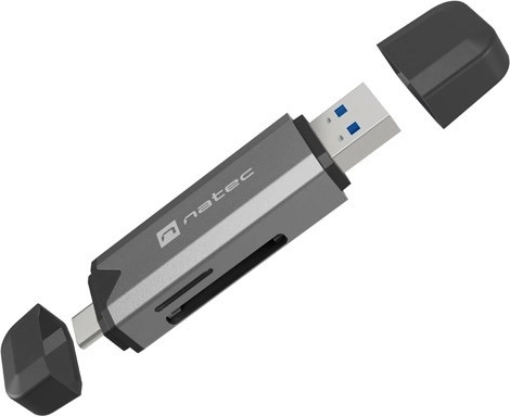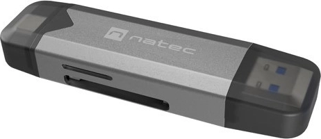Kompakter und vielseitiger Speicherkartenleser NATEC Scarab 3 mit zwei Anschlüssen USB‑A und USB‑C für einfachen Datentransfer zwischen älteren und modernen Geräten. Dank bis zu 5 Gbit/s beschleunigt er das Kopieren von Fotos und Videos, und mit OTG lässt er sich auch an Smartphone oder Tablet anschließen. Das Metallgehäuse mit Schutzkappen schützt die Anschlüsse, und das geringe Gewicht sowie die Handschlaufe sorgen für perfekte Mobilität.
