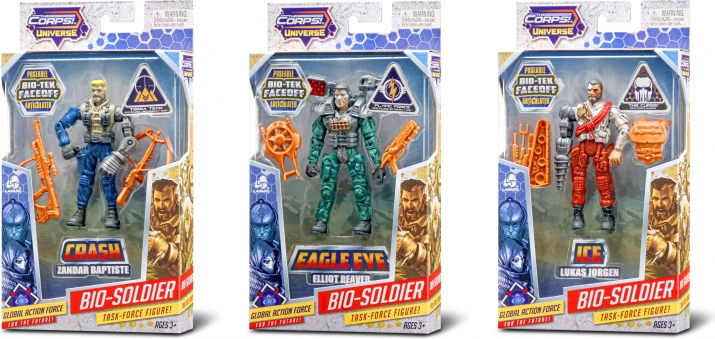 The Corps Soldat mit Waffen 10 cm. Drei Varianten: Crash, EagleEye, Ice. Perfektes Spielzeug für kleine Kämpfer.