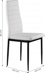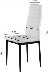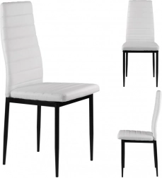 Unser Esszimmerstuhl-Set ist so konzipiert, dass es Ihr Interieur perfekt ergänzt. Die weiße Polsterung aus Ökoleder und die geraden schwarzen Beine schaffen ein stilvolles und modernes Design, das zu jedem Interieur passt.