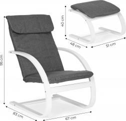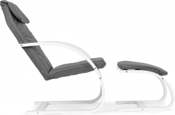 Zum Stuhl gehört auch eine bequeme Fußstütze, durch die Sie Ihre Beine bequem ausstrecken und vollständig entspannen können. Spezielles Gewebe und weicher Schaum bieten maximalen Sitzkomfort.
