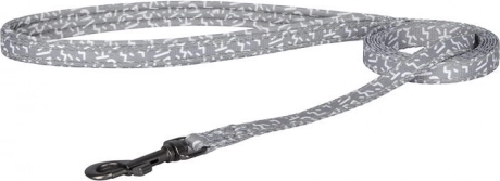 Robuste Nylonleine mit reflektierendem Muster erhöht die Sicherheit bei abendlichen Spaziergängen. Ein Metallkarabiner ermöglicht ein schnelles und sicheres Anleinen am Geschirr.