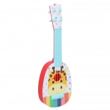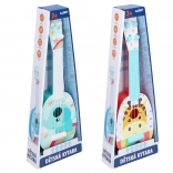 Diese Kindergitarre mit Motiv afrikanischer Tiere ist ideal für kleine Anfänger. Sie hat vier Kunststoffsaiten und eine Länge von 37 cm, was sie zur perfekten Wahl für einfaches Halten und Spielen macht.