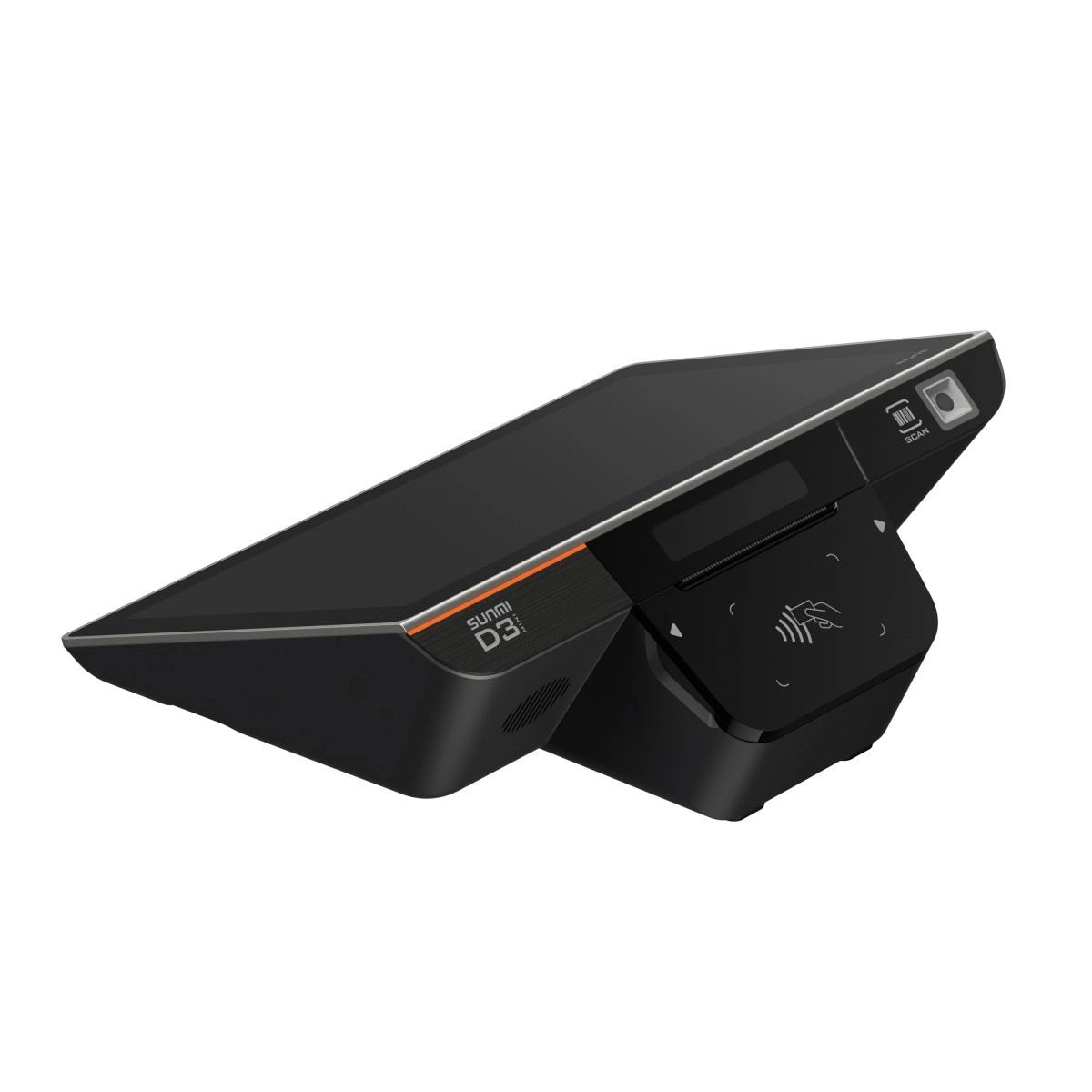Kompaktes und leistungsstarkes POS-Terminal Sunmi D3 Mini mit 10,1" Touchscreen kombiniert einen sechskernigen Qualcomm, 3 GB RAM + 32 GB UFS 2.2 und Wi‑Fi- und 4G‑Konnektivität. Bietet schnelle Reaktionszeiten, eine optionale integrierte Batterie (58‑mm‑Variante) für bis zu 4 Stunden Betrieb, einen integrierten Scanner und ein ergonomisch geneigtes Display für komfortable Bedienung.